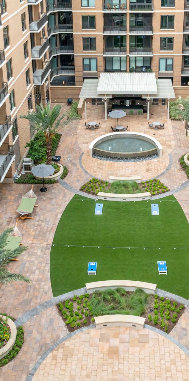 Understanding that amenities can be a primary driver of multi-family developments, we are committed to collaborating with developers and architects to design exceptional outdoor experiences for all residents to enjoy. Our 30-year expertise includes luxury high-rises, garden, wrap, and offcampus student housing. These projects include outdoor spaces that are livable, desirable, and memorable which helps enrich lives, foster connections, and leave a lasting impact on these communities.