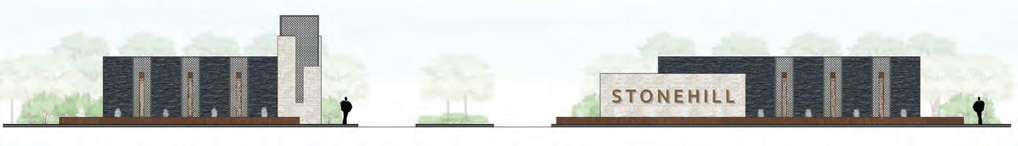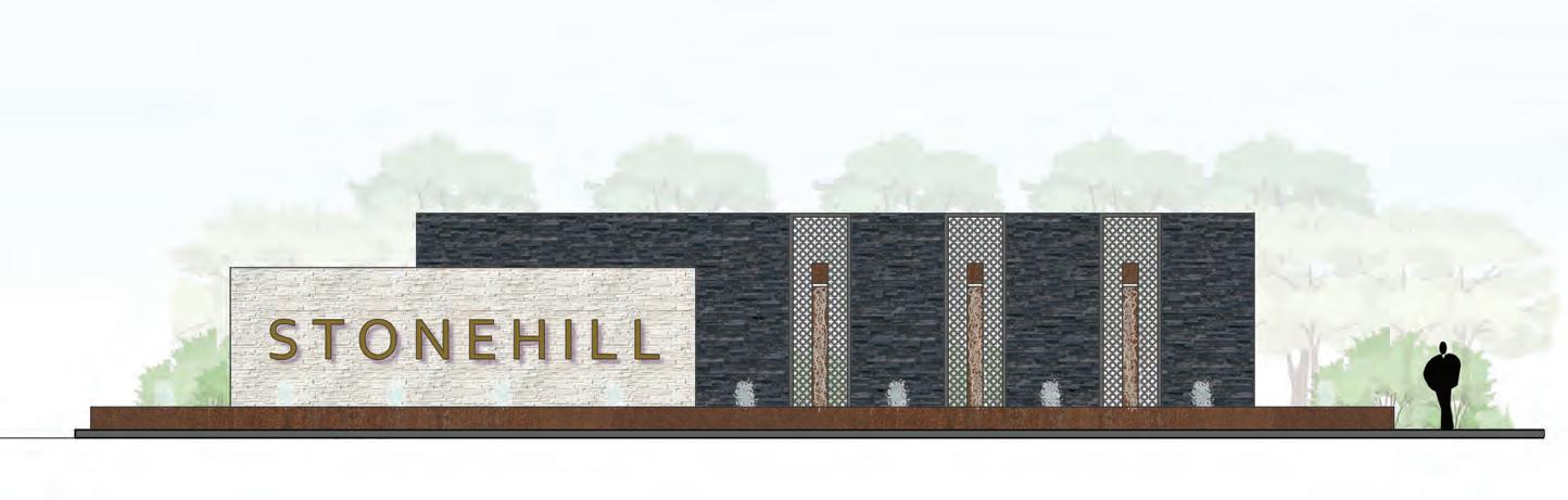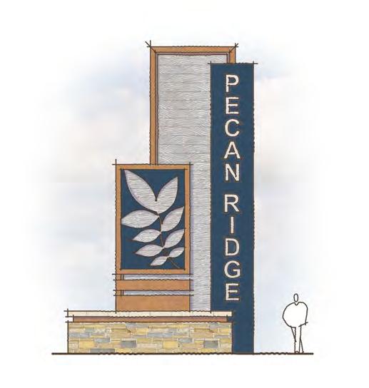 KW led the effort in designing the striking entrance monument for phase two of the Riverstone at Westpointe community in Northwest San Antonio. Adorned with natural stone and steel roof materials, this expansive entry sign extends a warm and inviting welcome to the community. The incorporation of a flowing waterfall and a rich plant palette further contributes to the creation of an alluring atmosphere. With the expansion of phase two, KW is thrilled to embark on the design phase for the most expansive Texas amenity center DR Horton has ever undertaken. The amenity center will include a great lawn, resort style pool, lazy river, water slide, splash pad, a separate lap pool, sport courts, playground, and several clubhouse style buildings with offices and recreational activities.