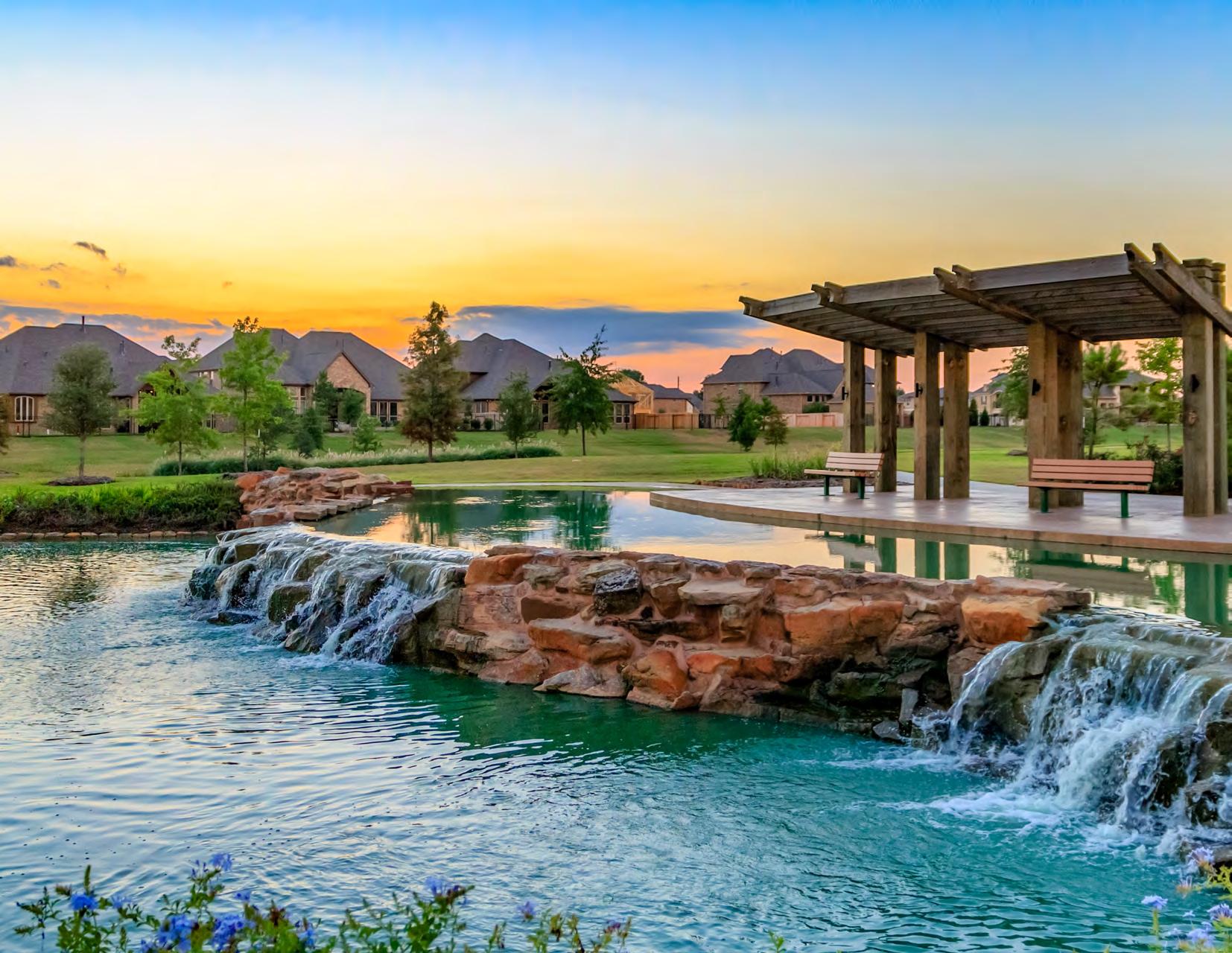 Whisper Falls’ branding and identity serve as the foundation, instilling a sense of belonging and pride among its diverse residents. One of the standout features of Whisper Falls is the entry monument tower coupled with a breathtaking water feature that not only greets residents and visitors with a sense of awe but also sets the tone for what lies within – a community filled with tranquility. With a vision for fun, inviting, and interactive amenities, our team designed a recreational facility with a fenced-in basketball court, a resort-style pool with water features & tanning ledges, a community playground, and a splash pad. To enhance the pool area, outdoor shade structures complete with grilling stations allow families to make a day out of enjoying the facilities. At its core, Whisper Falls is an embodiment of thoughtful design and meticulous planning, curated by the KW team to enhance the quality of life for the community.