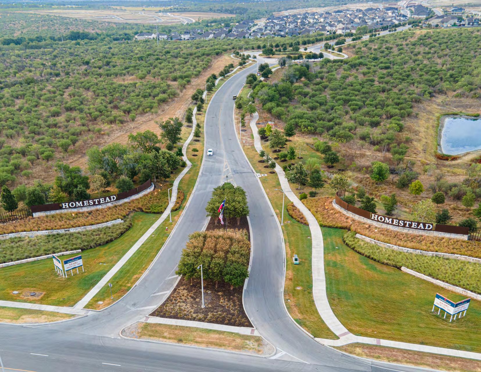 Nestled in the picturesque Cibolo/Schertz area just outside San Antonio, TX, Homestead embodies a harmonious blend of community and nature. Leveraging KW’s expertise, we crafted a cohesive branding strategy to establish Homestead’s unique identity. Phase I enhancements included striking entry signage, captivating monuments, and a roundabout entry adorned with public art sculptures. Phase II unfolds with a meticulously planned recreational haven, featuring a lap lane pool, vibrant splash pad, and a community playground area. An open-air pavilion invites gatherings, while a serene community garden and nature scape offer moments of tranquility. The sprawling landscape boasts nearly 5 miles of hiking and jogging trails, dotted with ponds and parks for residents to explore. Thoughtful design extends to parking lots and vehicular drop-off areas, ensuring convenience and accessibility throughout the community. Homestead emerges as a haven where residents can thrive amidst nature’s embrace.