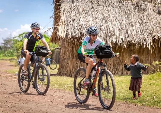 Embark on an adventurous ride past banana plantations, vibrant farming villages and a yellow-barked acacia forest • At our favorite hidden restaurant, sample an abundant variety of local Tanzanian food • Marvel at Lake Manyara’s breathtaking scenery, keeping a lookout for fauna grazing at the water’s edge • Bike in the lush Karatu region of the Tanzanian highlands, a prolific coffee-growing area • Sip sundowners and savor a farm-to-table dinner at our lavish abode.