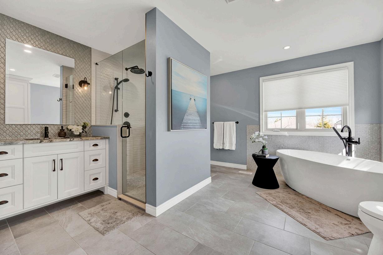 Ensuite: Granite counters, freestanding tub, walk-in shower, heated floors