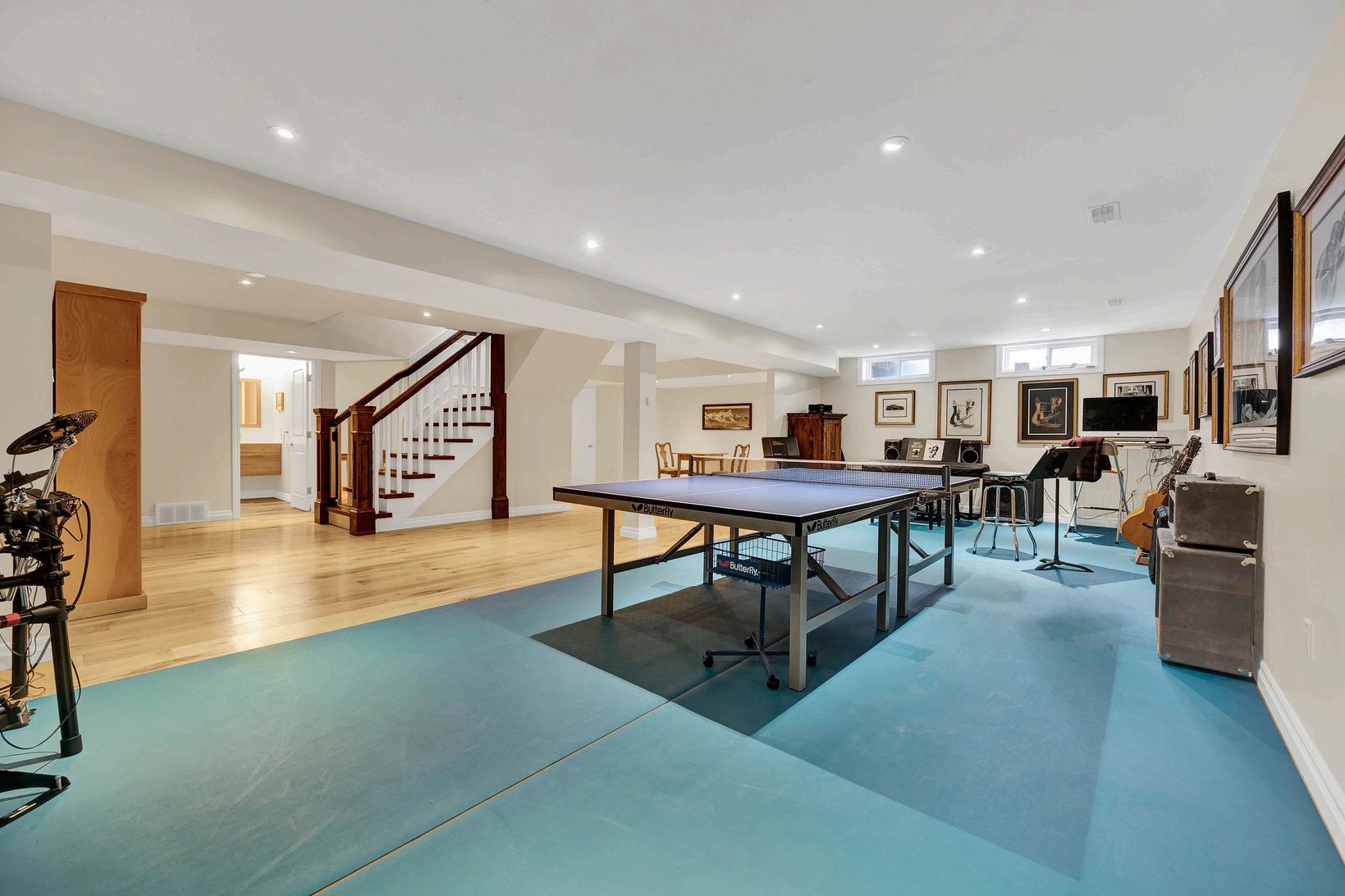 The finished basement expands your living space with durable and elegant engineered maple hardwood floors, ample pantry storage, and roughed-in plumbing, offering the potential for a custom wet bar.