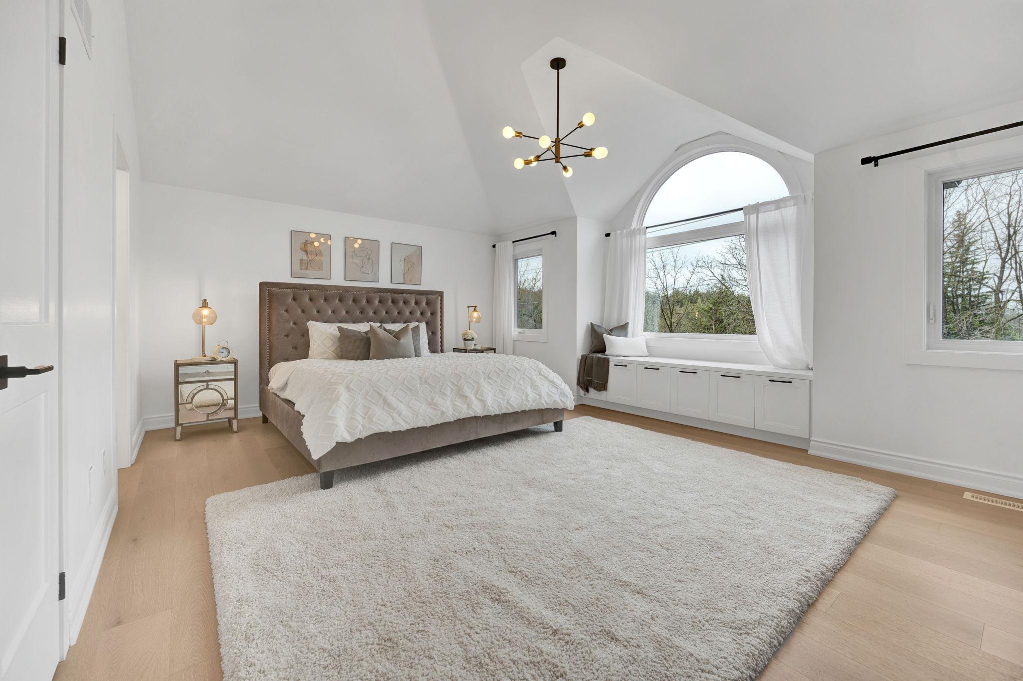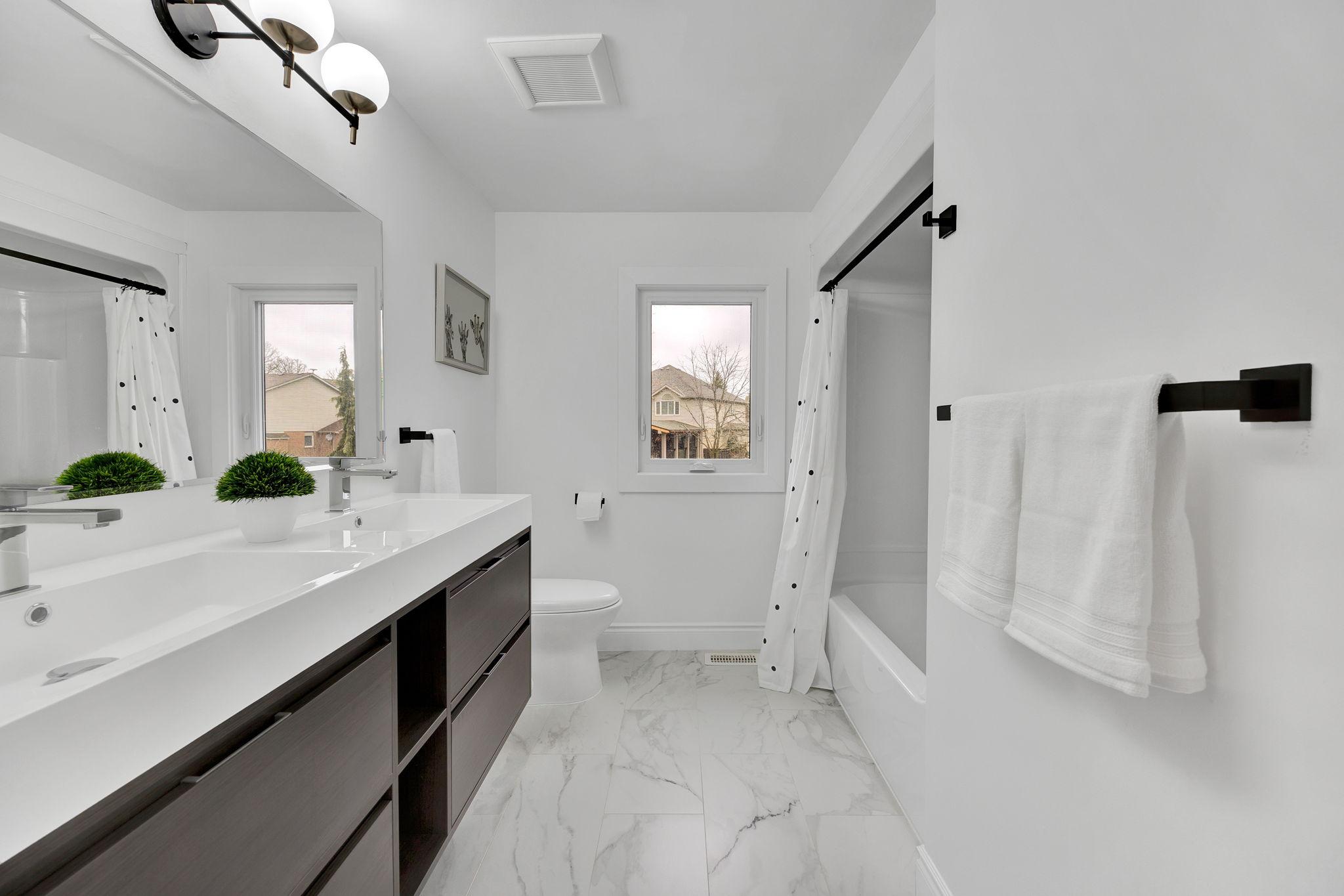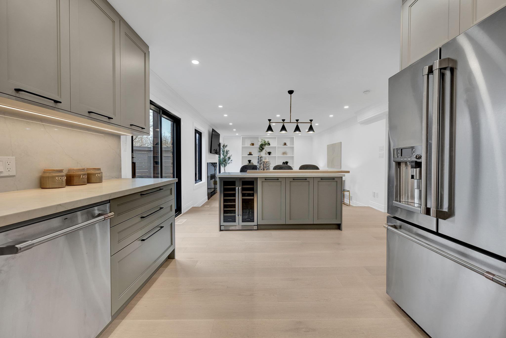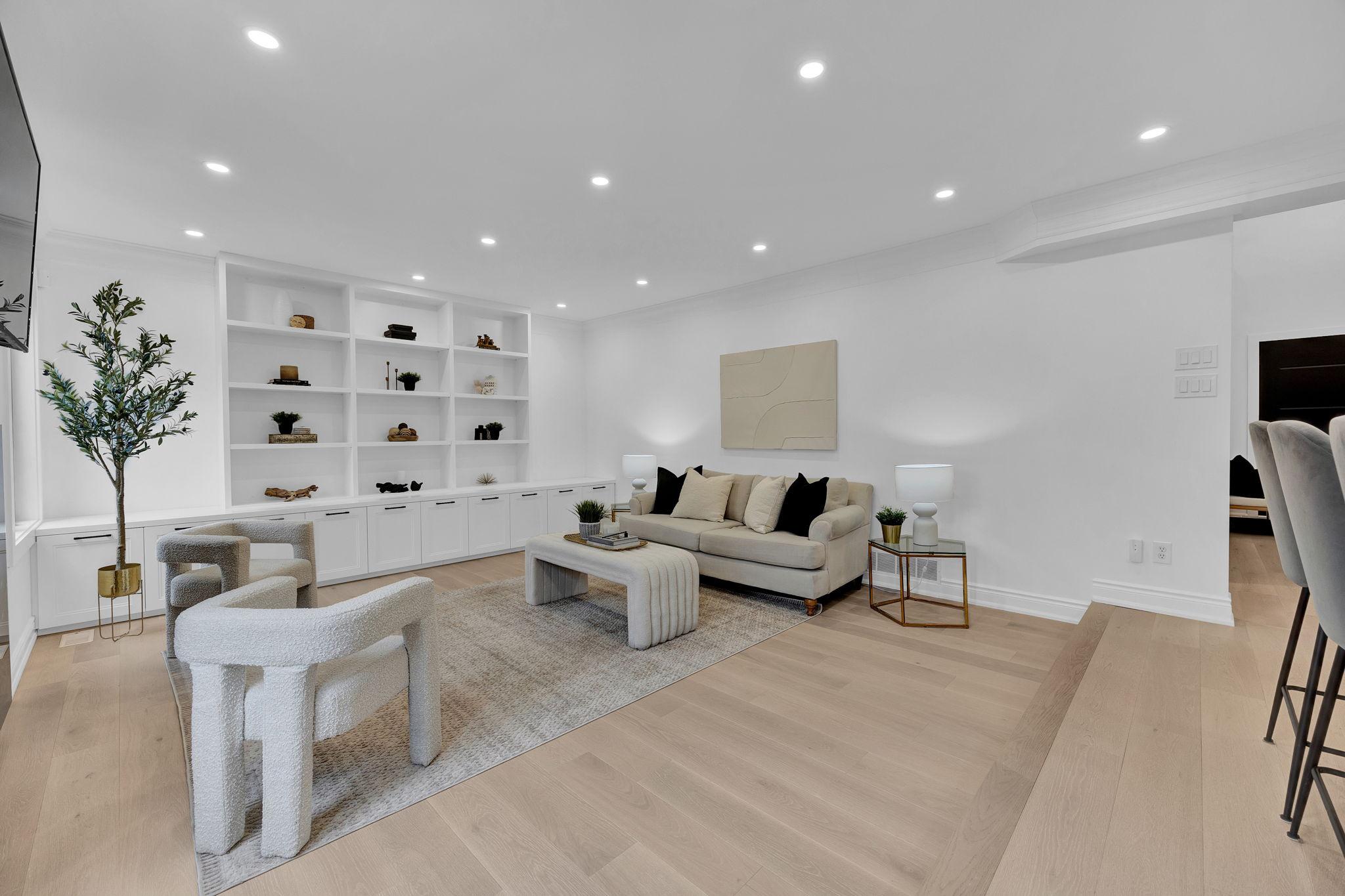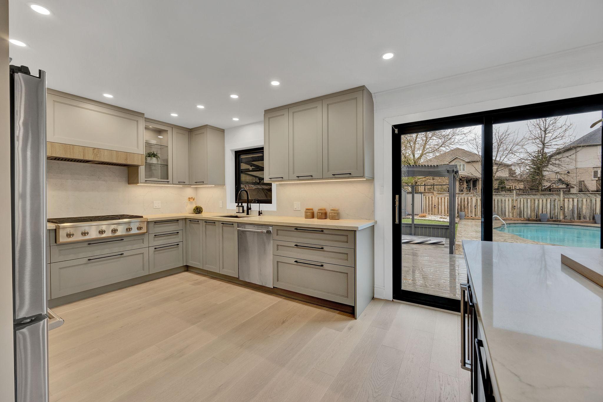 Throughout the main floor and beyond, enjoy the luxury of newly installed 3/4" engineered white oak hardwood floors, seamlessly connecting each space with their timeless appeal. Traverse the oak staircases, meticulously crafted to effortlessly guide you between levels, enhanced by sleek railings and pickets that exude modern style Each room beckons with the understated beauty of new 2-panel shaker style doors, perfectly complemented by the sleek Weiser Halifax hardware. Illuminate your surroundings with warmth and brightness, courtesy of the array of all-new light fixtures throughout the home, while numerous pot lights on the main level and basement cast a welcoming glow, creating an inviting ambiance for every family gathering.