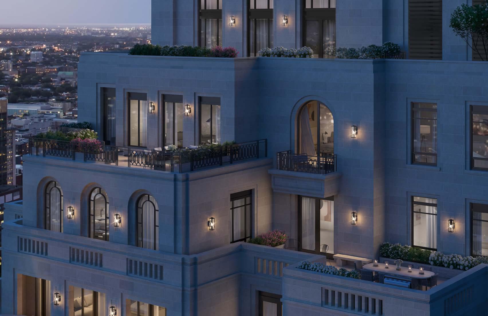 The expansive lobby will have a glass mosaic that spans the ceiling. Every element within the lobby has been thoughtfully curated to reflect elegance and grandeur. The meticulous attention to detail ensures every aspect of the entrance and lobby brings a sense of timeless luxury, creating a sanctuary feeling like home from the very first glance.