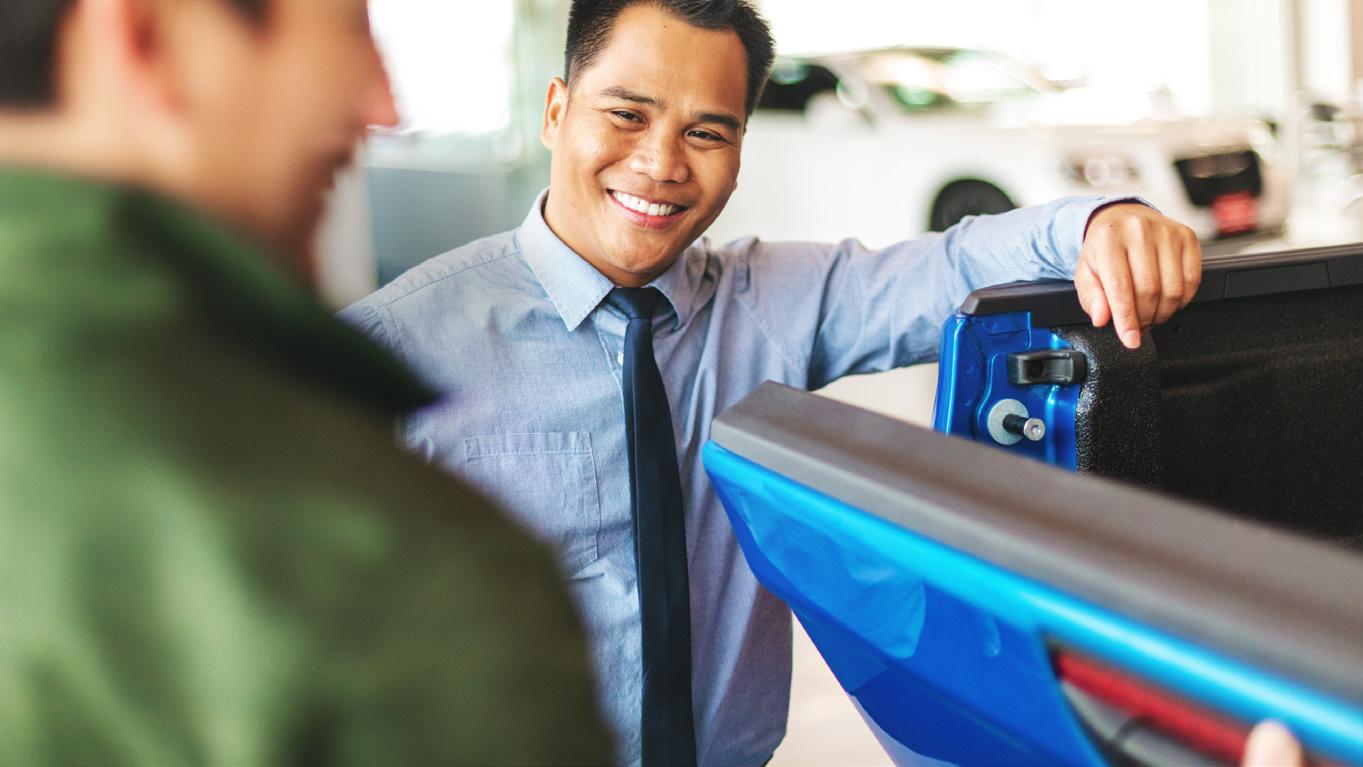 Dealer-facing photography has more of a professional tone. The interaction between people should always feel candid and positive. The dealership and cars should frame the people. Compositions should be clean and graphic.