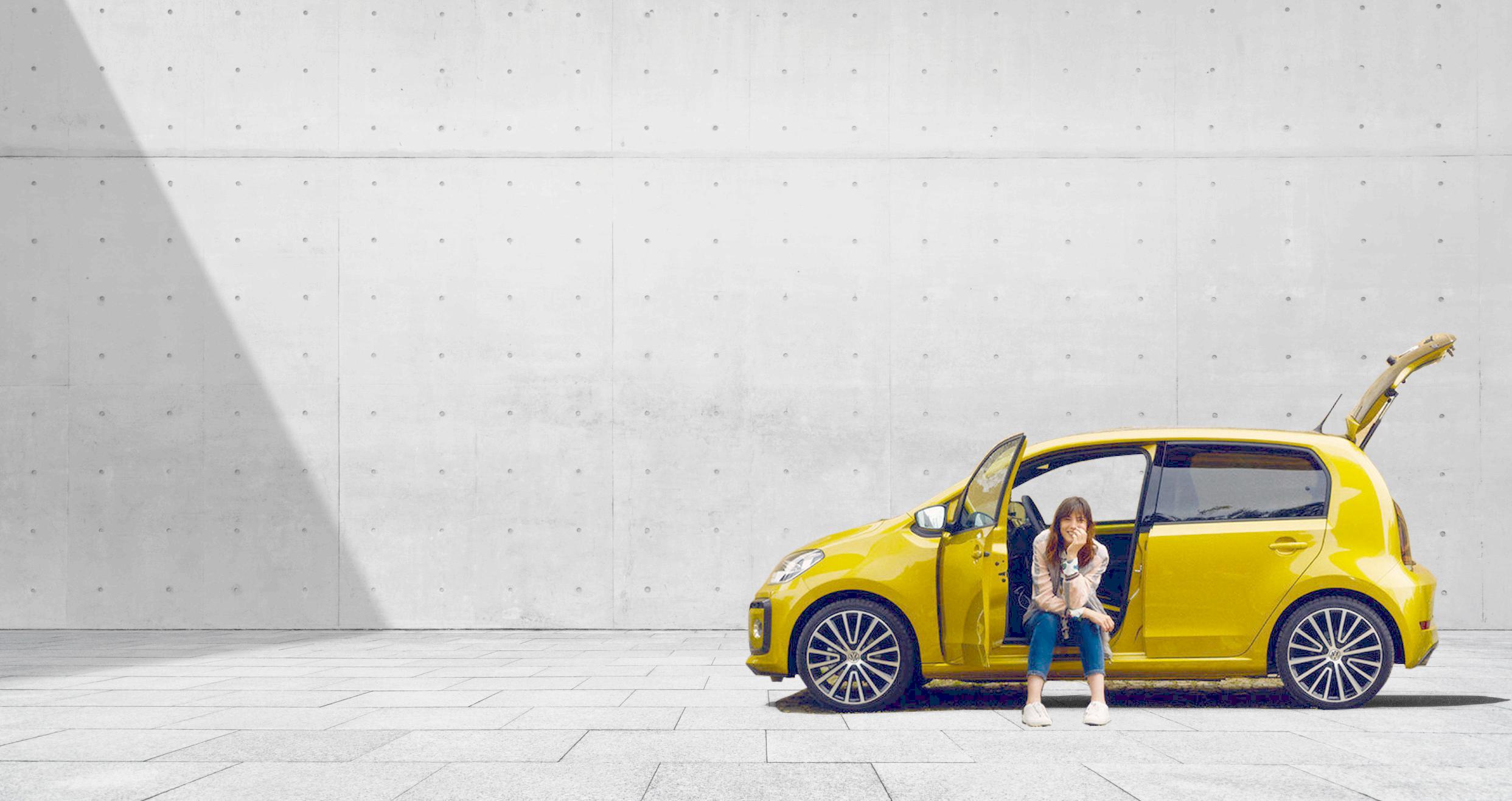 Simple and graphic background compositions put focus on the car and the person interacting in and next to the car, bringing a level of humanity and approachability. Strong use of negative space is essential.