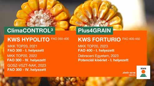 A KWS modern TOP 4 hibridek válasza: KWS HYPOLITO (FAO 350-400, korai érésű) és KWS FORTURIO (FAO 400-450, középérésű). Ezek a hibridek a KWS nyugat-európai nemesítői műhelyéből érkeztek, jellemzően felfelé szinte nyitott, igen magas potenciállal rendelkeznek.
