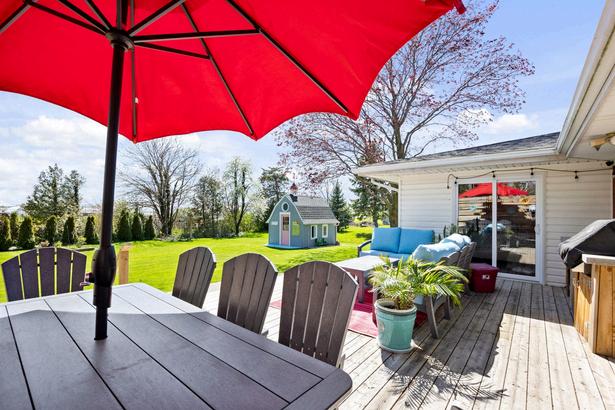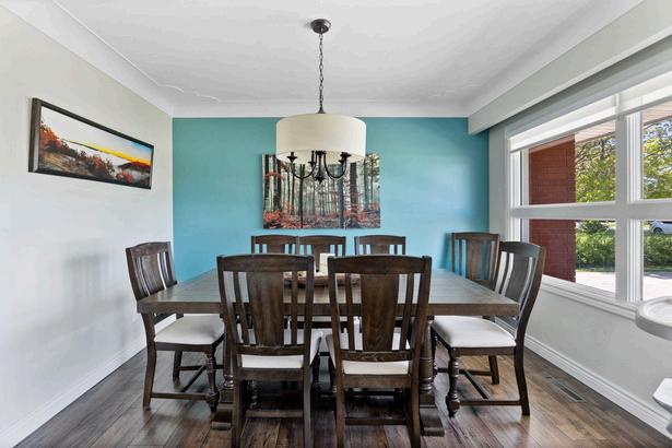 Spacious kitchen with abundant storage and a walkout to the back deck, perfect for summer dining. The living and dining rooms provide ample space for entertaining.