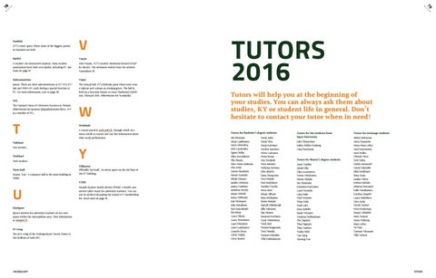 TUTORS 2016 Tutors will help you at the beginning of your studies. You can always ask them about studies, KY or student life in general. Don’t hesitate to contact your tutor when in need!