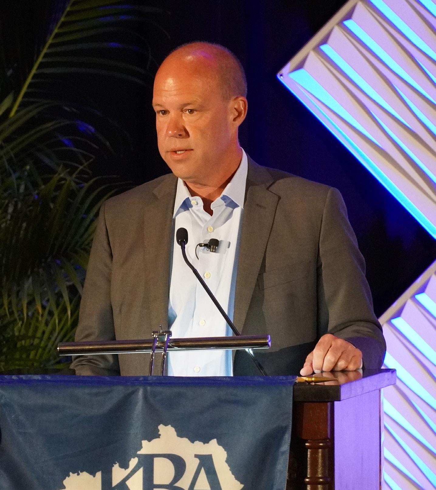 We had a very special guest join us in Marco Island for our second speaker. U.S. Representative Andy Barr took to the podium after a short video was played to the audience with clips from a pair of appearances he had over the summer. This past July, Barr gave an impassioned rebuke of H.R. 4277, the Overdraft Protection Act. His remarks advocated for Kentucky’s Community Banks in the strongest possible terms, and against the Act, which he said would be “a killer for community banks and their small-town customers.” This past August, on Meet the Press, Rep. Barr said: “These seats belong to the American people, and there is a massive disconnect between the priorities of the politicians in Washington and the concerns of the American people.” I am never not impressed when Rep. Barr shares with our members his Wash ington insight. It is important to have friends of community banking in DC, and we can definitely put Rep. Barr in that group.