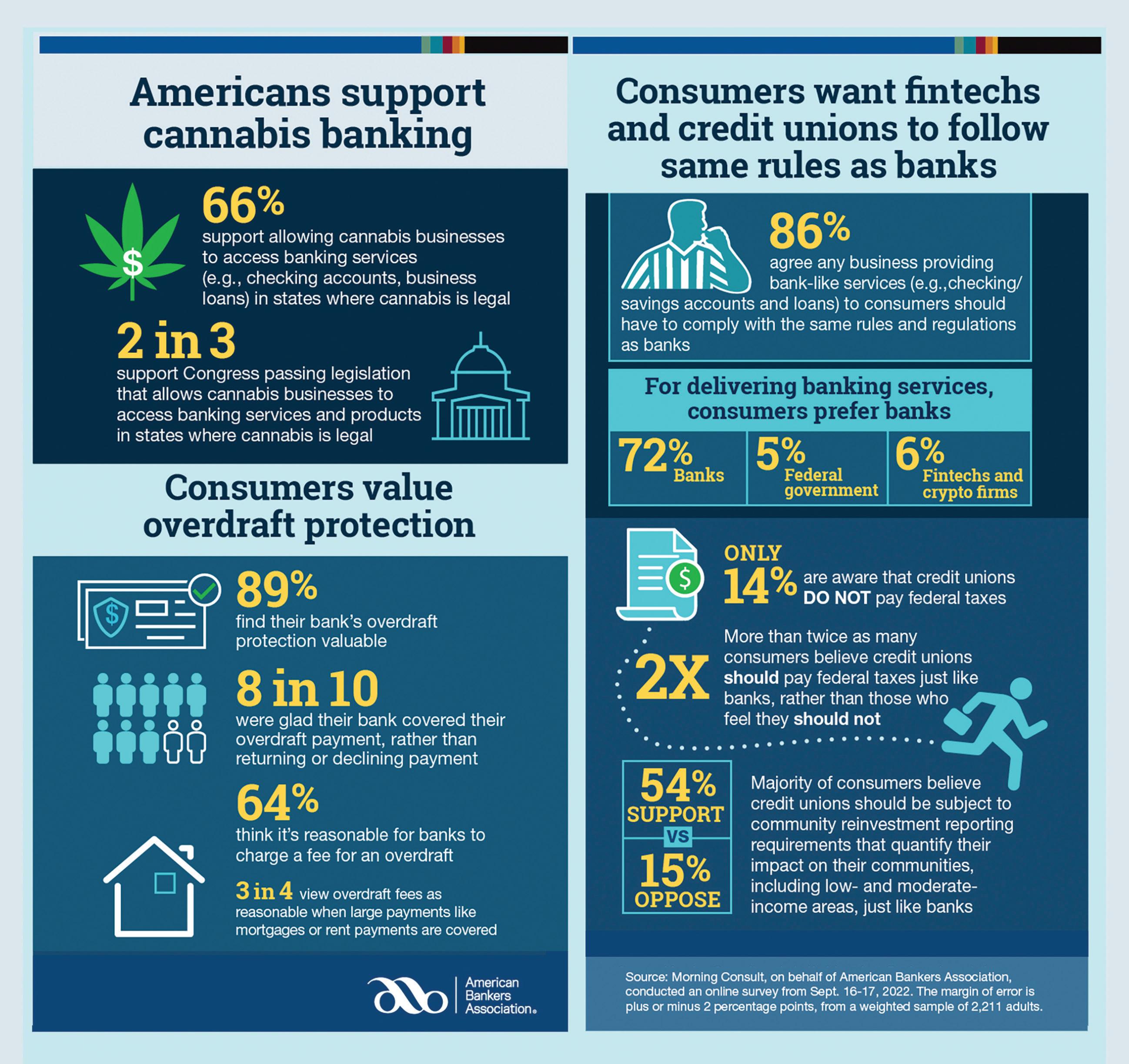 Regulators move too fast and Congress moves too slow. For ex ample, banks need to be able to legally bank cannabis business for states where it is legal. Cannabis is legalized in many states and confused by local law enforcement with legal hemp businesses. Banks are told that their regulators won’t enforce the federal pro hibition on banking cannabis, but is that true and when will it not be true again? We can’t know.
