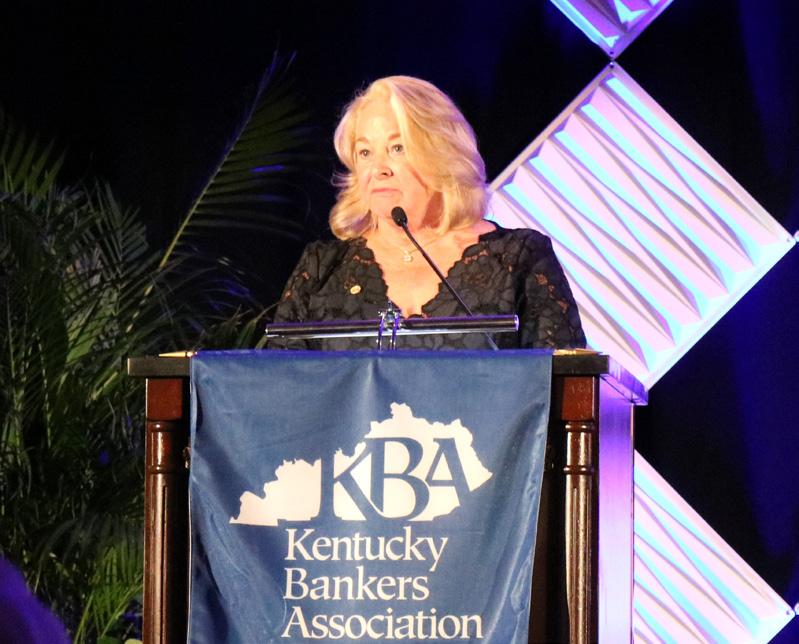 I truly look forward to sharing a strong relationship culture, as I serve as Chairwoman for the Kentucky Bankers As sociation. I hope to share my message, of generosity, per sistence, and community service, as it has been shared with me during my years in management. “When the tide rises, all the ships float higher.”