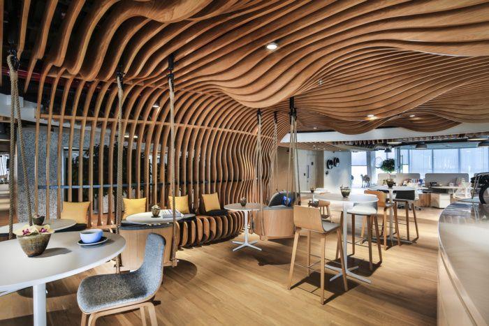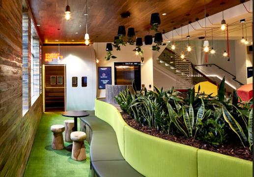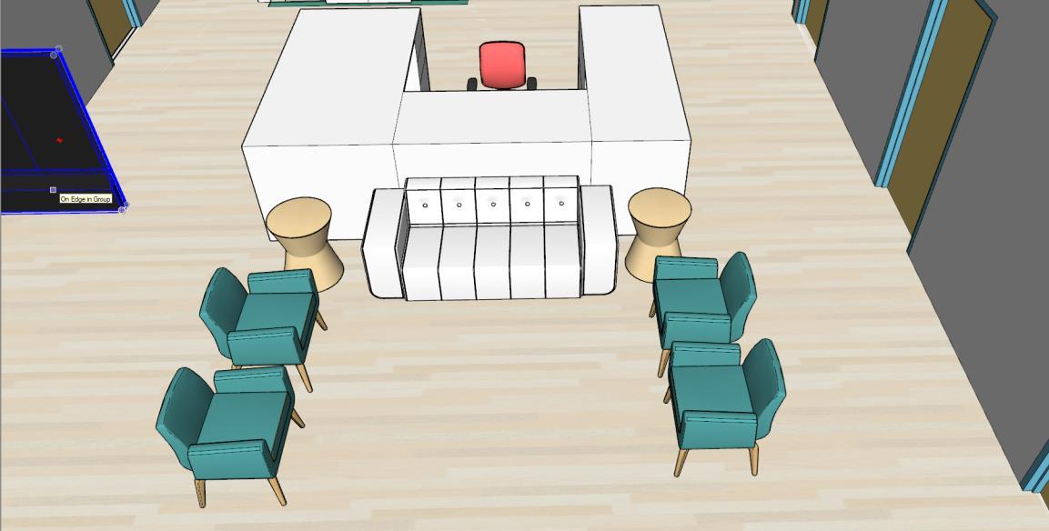 To express this idea, the building will have a bright, airy, and natural elements in the space. The way you move through the space is through an open and fluid space to create an organic/natural feel. The idea is further reinforced by the use of materials through wicker furniture, rounded edges, smooth textures, the use of green, pink/red, and blue, and hard wood flooring.