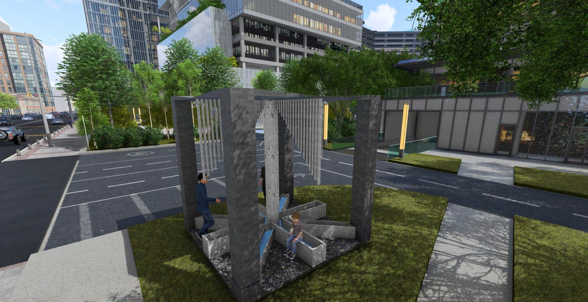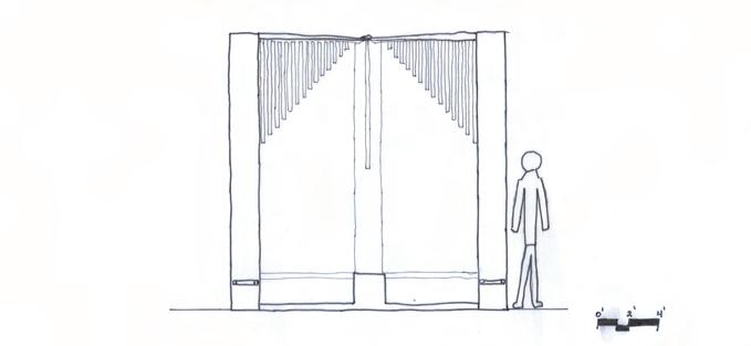 At rst glance. My space doesnt look like much other than some tubs of water and haning poles, but it is much more than that. Not only does it serve a function. It also allows one to be enhanced by the element water. Say youre walking home from work and it starts to rain. You spot my structure to your left and decide to stand under it to be covered from the rain. As the rain starts to pour down heavier, you notice that the water starts to pour into the tubs from the hanging tubes and a stream of water that forms a wall comes from the slits in the roof. Youre worried youll get wt but then realize that the tubs catch all the wayer. You peacefully listen to the rain ow through the structure while you wait for the rain to stop. when it nally stops, you walk away and look back and have a full understanding of the structures purpose.