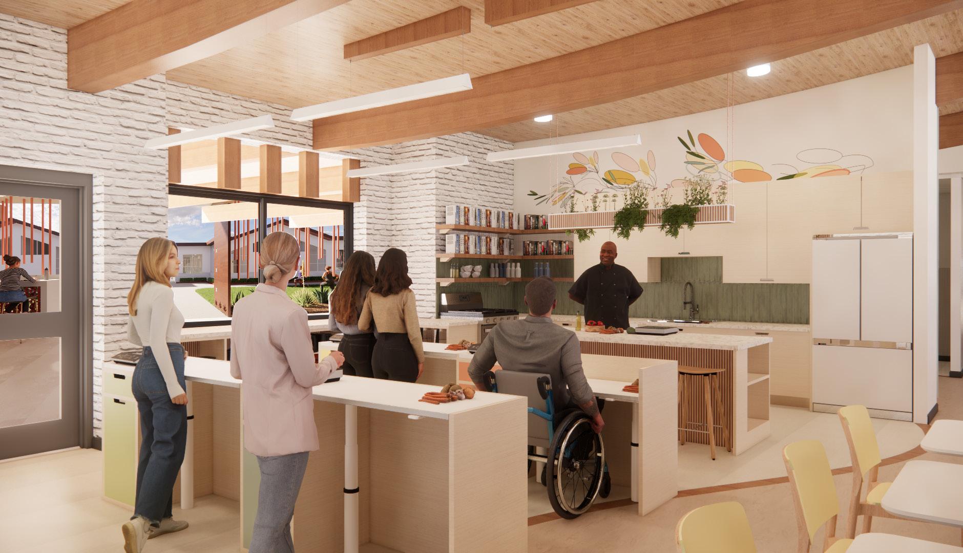 eight agave plants native to the southwest region were chosen as symbols and inspiration for the design of the community and living pods. each of the living pods was given a unique name and color from these plants to promote individuality, autonomy, and aide children with wayfinding