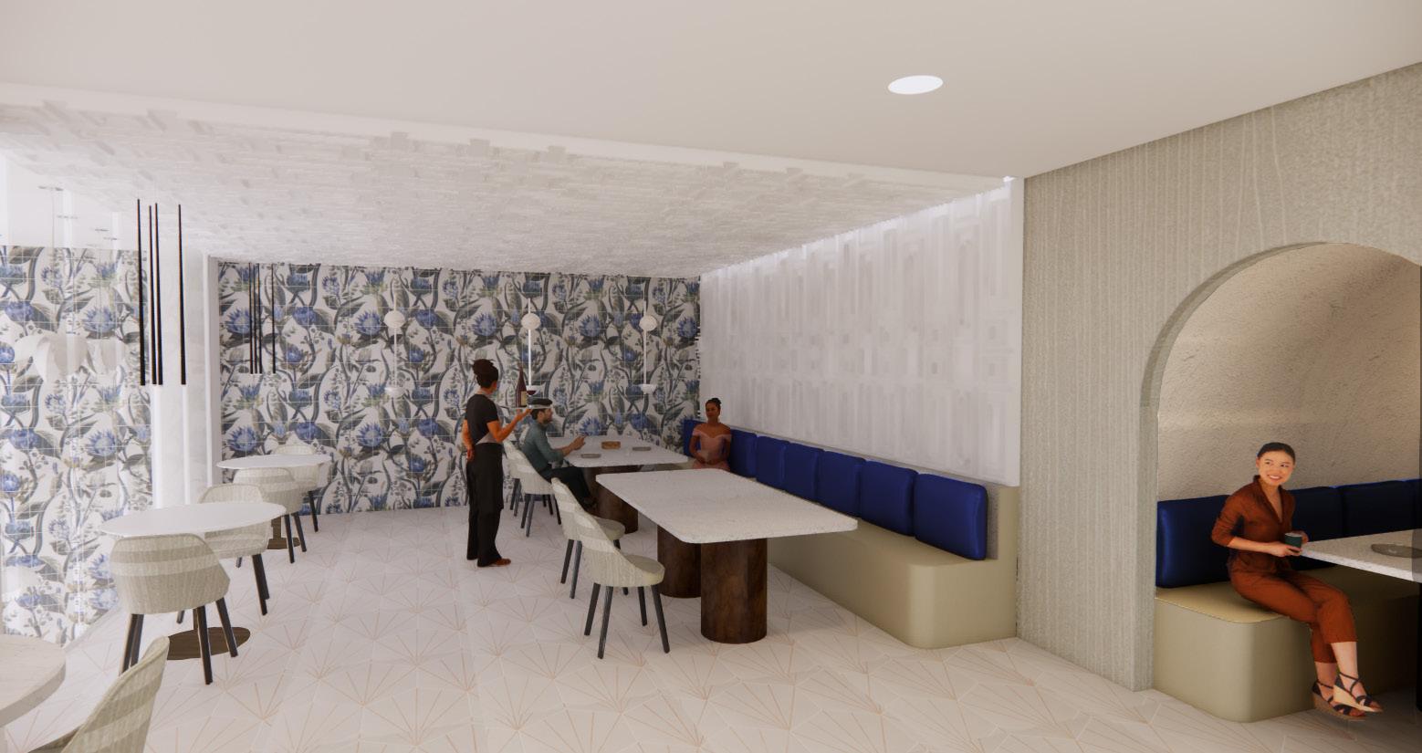 Basing our design off the idea of ‘eunoia’, a Greek term meaning ‘beautiful thinking’, the Greek restaurant takes hold elements of Greek culture and architecture throughout the interior.