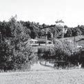 100 years ago, dense vegeta+ tion was limited to a small grove of trees near the strea,. Over the following decades, farmland was slowly allowed to become forest. Large, old trees are found in darker green areas, with smaller and often invasive shrubs occupying lighter colored areas.