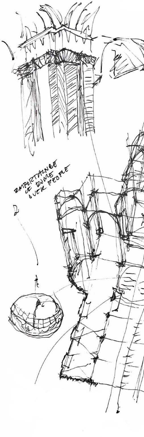 Surrounded by a vineyard landscape, the research center is surrounded by a petal-form pavilion complex. In an anthropological context, Napa Valley has richly documented its historical occupation by the Wappo indigenous tribe. The Wappo are known for novel construction technologies that utilize local resources. The project re-discovers the Wappo’s intervention in the landscape and embraces aboriginal construction techniques.