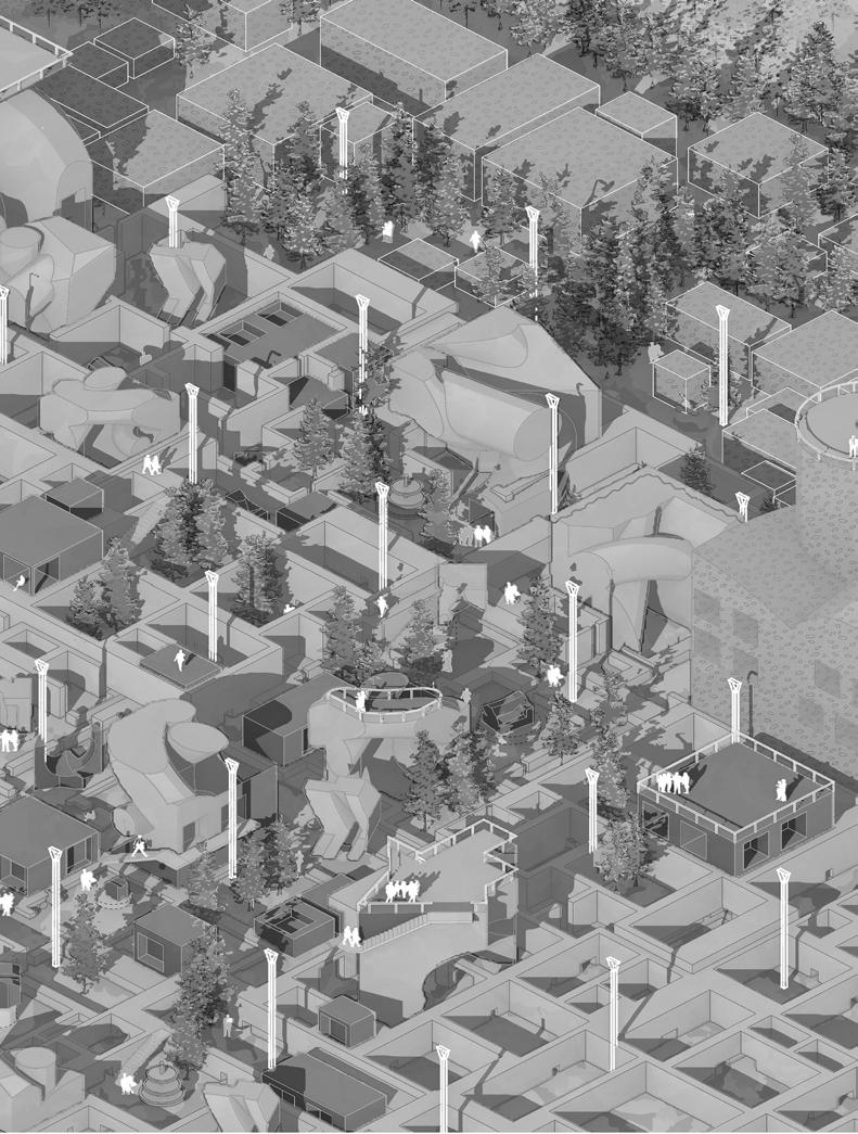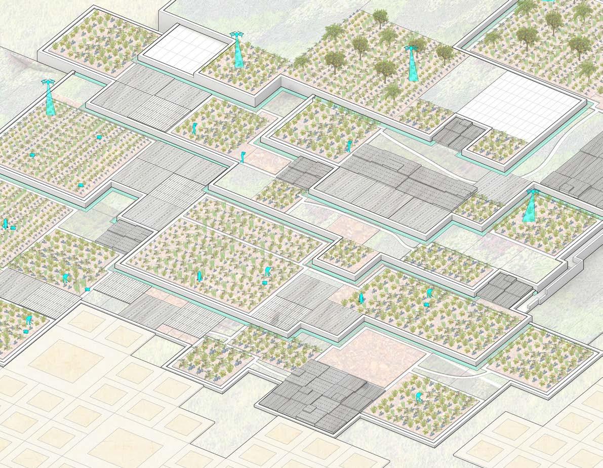 The campus as an urban simulator becomes the scene which facilitates democratic participation in developing resilience for agriculture and infrastructure. It bridges the city and the countryside and projects urbanization to the convergence of the networks and ecologies that support both. Campus by pixel speculates urban life that is at once massively productive & sustainable, localized & inter-orbital, and a new social landscape that integrates the crop, the human, and the non-human.