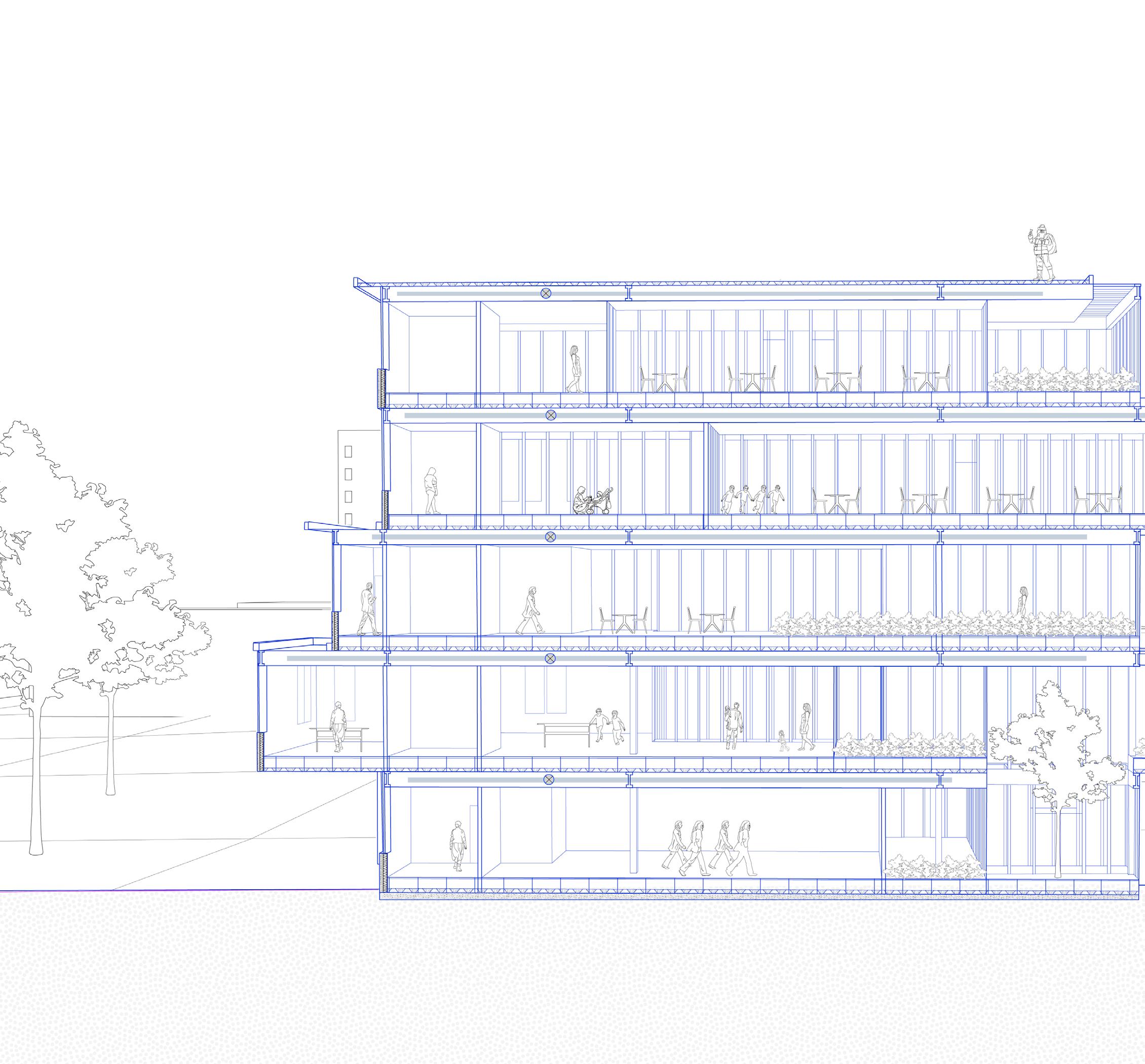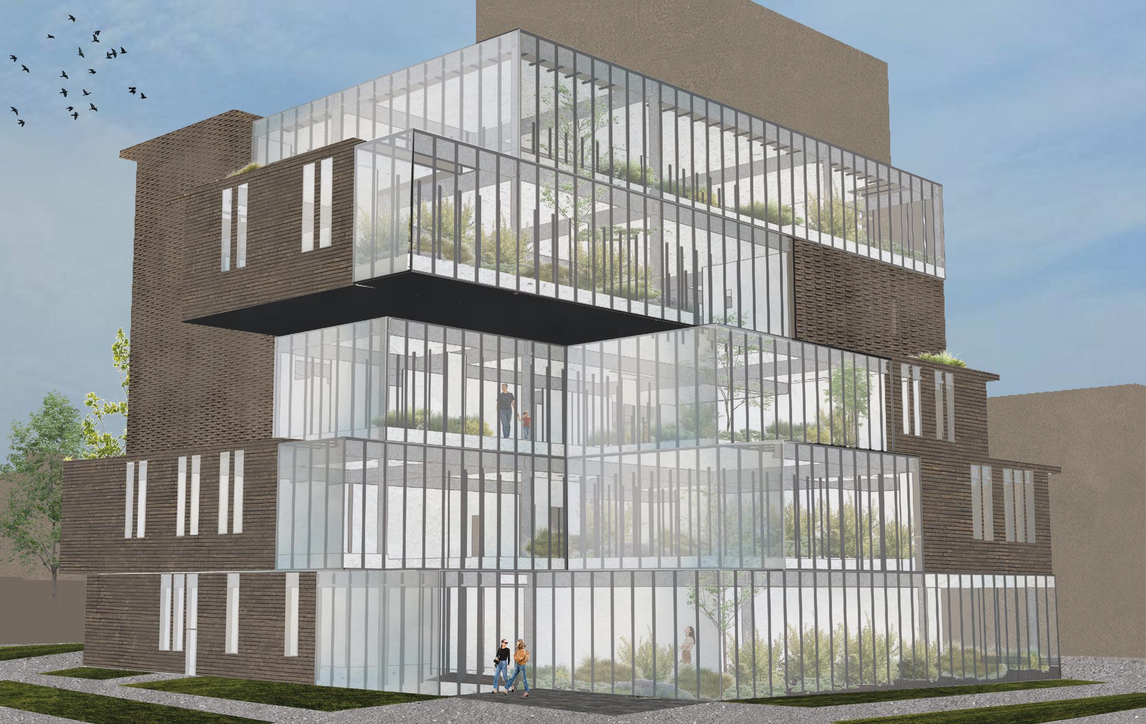 A seed lab and vault combining labs and interactive learning to grow community, knowledge, and plants. Utilizing the petals of the Living Building Challenge was a key goal when formulating this project. Colorado State Legislation places limitations on the holding and reuse of rain water as a result of their high desert climate zone. With the mass of this building in combination with the series of offset roof planes, we have created a system of “tributary” areas to pass the rainwater from roof plane to roof plane to irrigate the native colorado shrubby plants. Inside the urban agriculture provides different growing conditions and interactive learning opportunities. The earthen bricks, addressing the material petal of the LBC, are made of local quarry biproducts and are arranged in a pattern with 3D pattern in the flush portions of the building and the portruding segements of the building with a flush version of the same pattern. Located in the bustling Denver arts district CULTIVATE invites people to appreciate nature’s beauty and cultivate their minds and the earth.