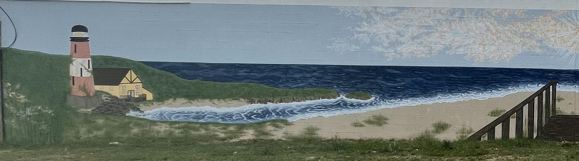 Above - North Carolina Beaches Mural, Paint on Concrete Block in Carroll, IA, Summer23