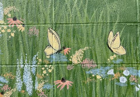 Left - In Memoriam Paetyn & Patty, close up of mural in Carroll, IA, Summer 23