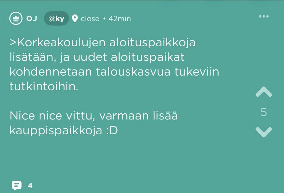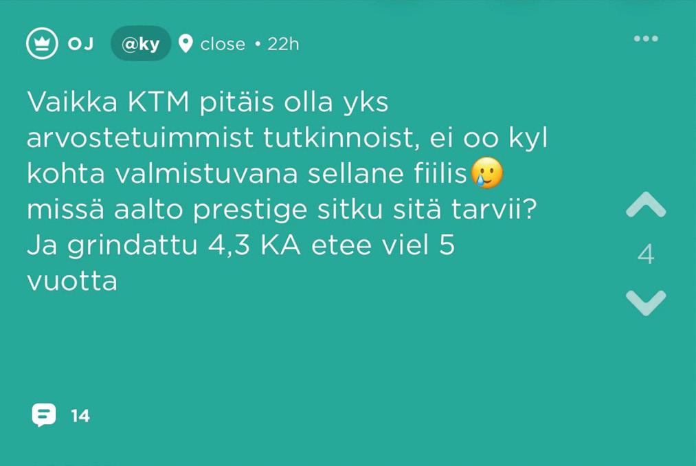 Mutta koska olen taitavasti brändännyt itseni kaikkitietävänä tahona, mitä tulee TuKYyn, tiedän tietenkin myös kuka edeltäjäni oli. Kunnia sille, jolle kunnia kuuluu. Rakas tutorparini Alex Toiviainen, historiallisen sinappikirjeenkin kirjoittaja, oli KYlisteen numeron 4/22 Pakinainen. Itse hyppäsin ohjaksiin vasta vuoden 2024 ensimmäisessä numerossa, Anna Immon ja Minttu Wilskan kuumeisten pohdintojen tuloksena. Tällä rahalla sai nyt tällaista. Olen kuitenkin myös tunnettu perinteiden vaalijana, joten seuraava Pakinainen on tuttuun tapaan minun valitsemani.