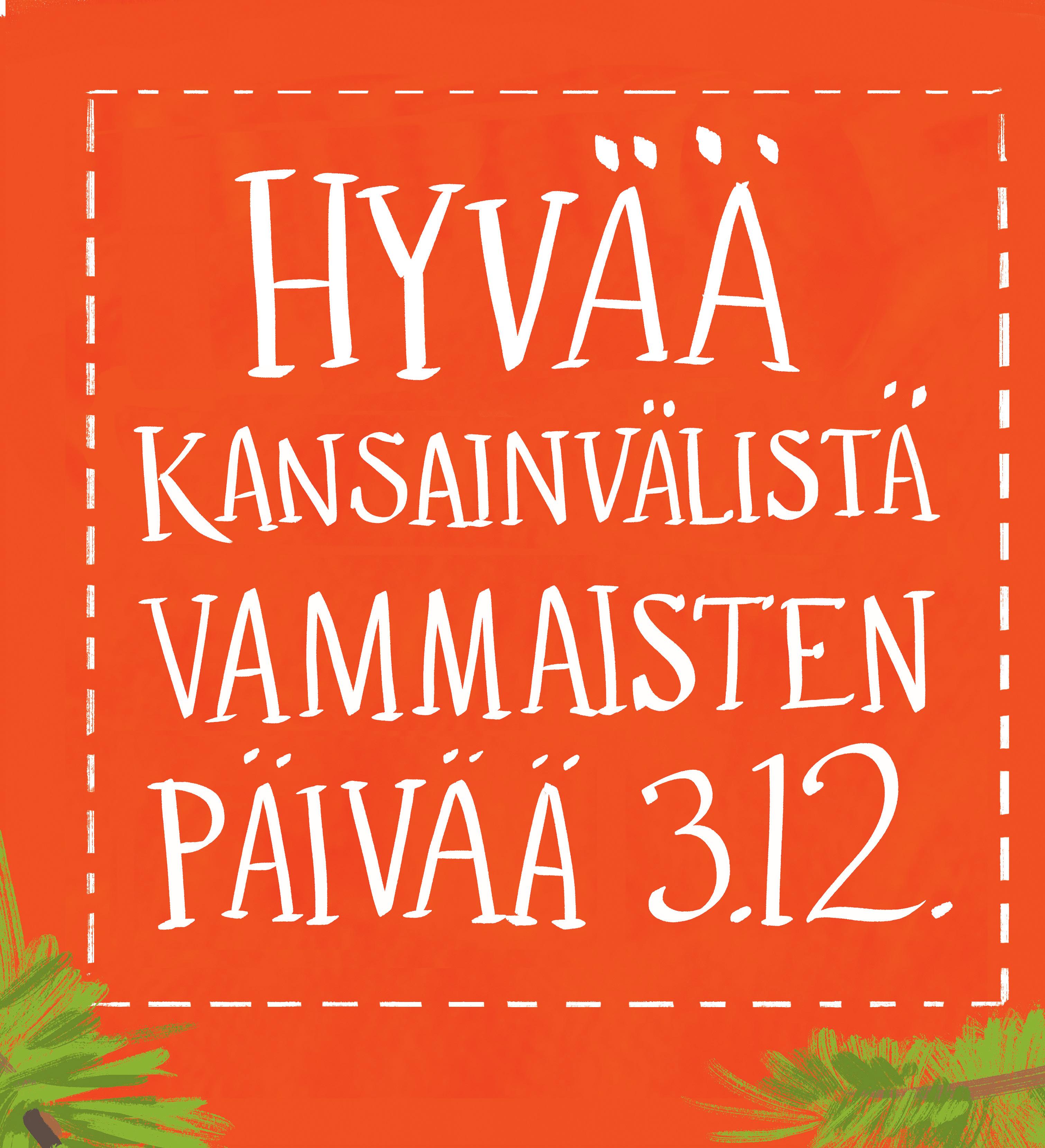 ovat kuitenkin hiljalleen muuttuneet. Alettiin ajatella, miten yhteiskunta voisi olla paikka, jossa me kaikki voisimme elää yhdenvertaisina toistemme kanssa. Henkilökohtaisen avun saaminen subjektiiviseksi oikeudeksi kesti vuosia, mutta kun se vihdoin onnistui, alkoi maailma aueta meille vammaisille ihan toisella tavalla. Vuonna 2016 Suomi ratifioi vihdoinkin YK:n vammaissopimuksen. Sen tunnettuus ja vaikutukset tulevat näkymään vuosien päästä. Työsarkaa riittää, jotta sopimuksen henki toteutuu kaikkialla.