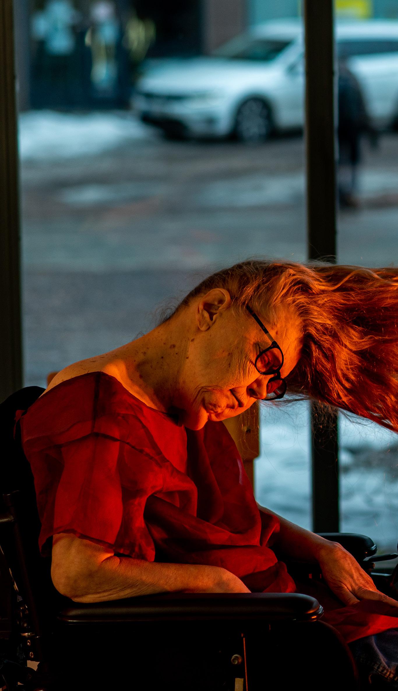 Avustajani käski osallistumaan ja raahauduin ilottomana. Kalle surisi sähkärillä hengityskoneineen melkein tyhjässä salissa. Töksäytin oitis: ”Olen masentunut. En ole hauskaa seuraa. Itkettää. Lääkitys aloitettu toissapäivänä. Pelottaa ja paniikkikohtaus väijyy.”