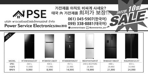 난타방콕전용관......641-4407/10 딤채냉장고판매....087)037-0704 락토핏(생유산균)...094)987-0202 매일두유................123-8726 IB(Thailand) 크레인 임대,매매 ...........662-8023 하나 트레이딩(LPG 가스 장착) .........081)615-3868 한국전통포장...........095)713-7937 한일흥신소...........081)937-1806 BANG Pure Flower Studio .............083)037-2043 ECOUNT................064)508-4693 BLEZ약국...............092)223-1251 Up솔루션(매장 POS 및 CCTV) ..........096)853-5906 VODA Drinking Water ................089)221-2423