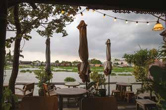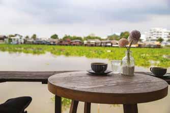 콕에서 북쪽으로 약 한 시간 남짓 거리에 위치한 빠툼타니(Pathum Thani)는 최근 몇 년 사이에 태국 현지인 들은 물론, 특별한 경험을 추구하는 여행자들 사이에서 새롭게 각광받고 있는 지역이다. 짜오프라야 강의 풍요 로운 물줄기를 따라 형성된 이 고요한 도시는 푸르른 자연과 태국 전통문화가 조화롭게 어우러져, 방문객들에 게 진정한 휴식과 영감을 선사한다. 그리고 바로 이곳, 빠툼타니의 매력을 오롯이 담아낸 듯한 카페가 등장해 화제를 모으고 있다. 바로 '반 텅 끄랍 카페(Baan Thong Krub Cafe)'다. '반 텅 끄랍'이라는 이름에서부터 정겨움과 따스함이 느껴지는 이 카페는 단순한 음료와 디저트를 제공하는 공 간을 넘어, 방문객들에게 태국의 전통적인 아름다움과 현대적인 감각이 어우러진 독특한 경험을 선사한다. 입 구에 들어서자마자 잘 가꾸어진 열대 정원과 고풍스러운 태국 전통 목조 가옥이 시선을 사로잡는다. 마치 시 간이 멈춘 듯한 이곳의 첫인상은 분주했던 마음을 차분하게 가라앉히고, 앞으로 펼쳐질 공간에 대한 기대감 을 한껏 높인다. 방콕