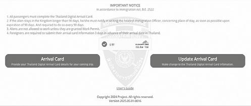 2025년 5월 1일부터 시행 중인 태국의 디지털 입 국 카드(TDAC, The Digital Arrival Card)는 수