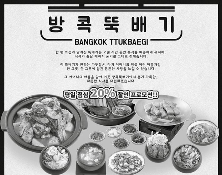 로 굳건히 자리매김한 '대장금'. 돼지김치찜, 냉동 삼 겹살, 옛날 돈까스, 매일 무쳐내는 겉절이와 신선한 칼국수, 그리고 별미인 설탕 누룽지까지. 수많은 유행 을 선도하며 방콕 교민 사회는 물론, 한국 기업과 관 공서의 '최고의 회식 장소'로 명성을 쌓아왔다.