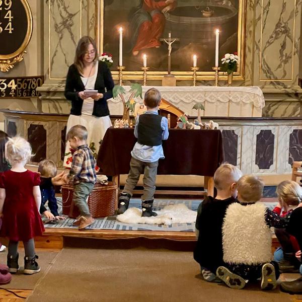 På julafton kl 10 var det julbön i kyrkan då alla tillsammans byggde upp julkrubban. När gudstjänsten var slut väntade Josef, Maria och åsnan utanför kyrkan och lät oss följa med till stallet för att se var undret skulle ske.