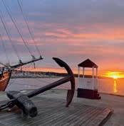 (Ein Teil) der Fregatte Jylland befindet sich in Juelsminde. Hier können Sie einen verlorenen Anker aus dieser Zeit (1912-1925) entdecken, an der sich die Fregatte Jylland in Juelsminde befand. Der verlorene Anker steht nun als Denkmal am Hafen.