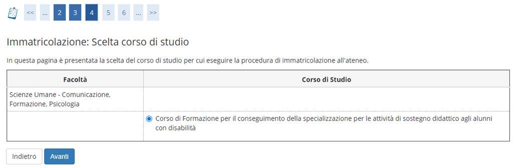 Selezionare la tipologia di corso di studio per cui si intende procedere all’immatricolazione e premere “AVANTI” .