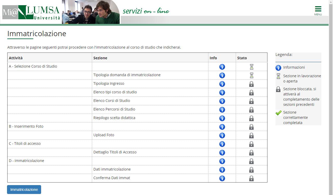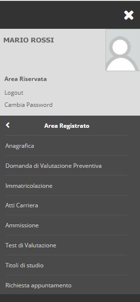 Cliccare nel menu in alto a destra e scegliere Area registrato>>Immatricolazione