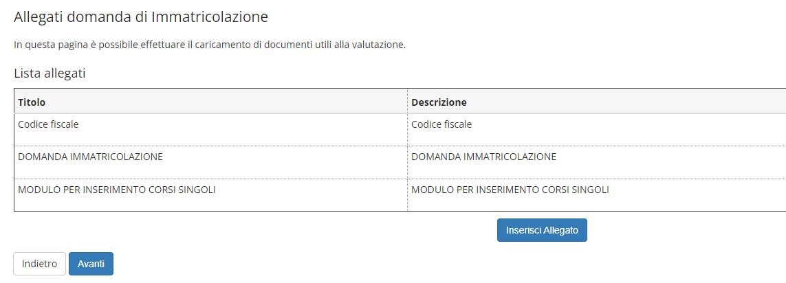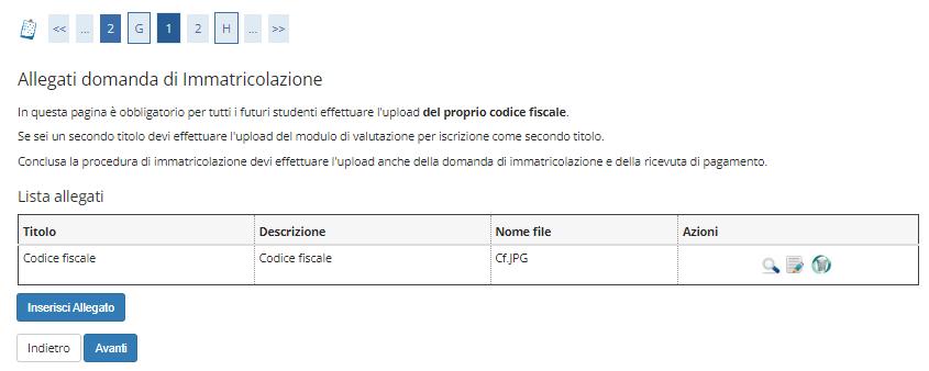 Caricare il proprio codice fiscale tramite il tasto “Inserisci Allegato” e successivamente premere il tasto “Avanti”.