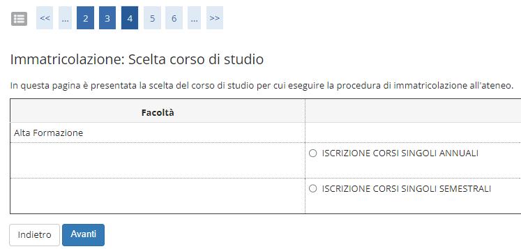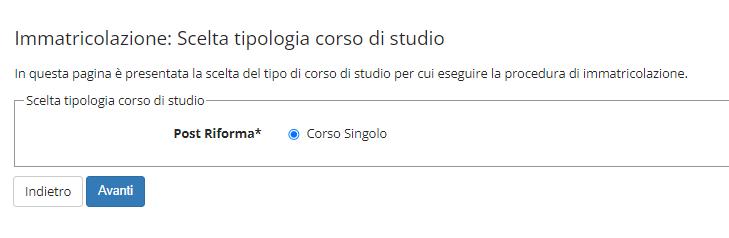 Selezionare la tipologia di corso di studio per cui si intende procedere all’immatricolazione e premere “AVANTI” .