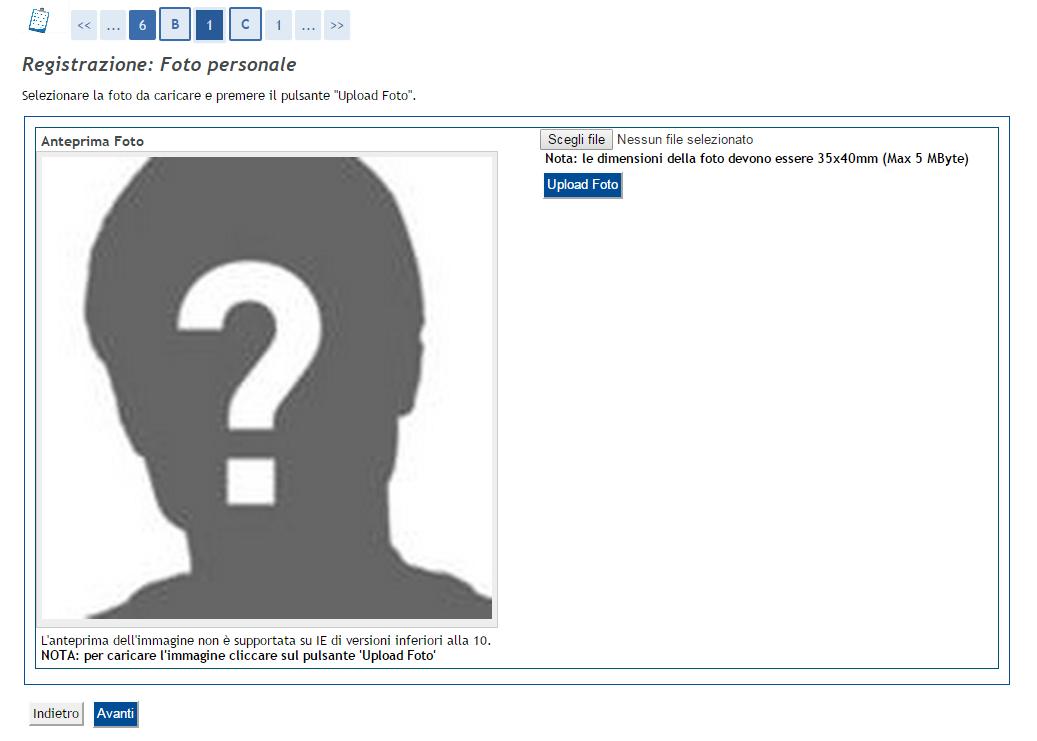 Le dimensioni della foto devono essere 35x40mm (max 5 Mbyte).