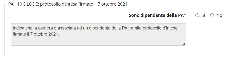 Se dipendente della pubblica amministrazione selezionare “Si” e procedere con la compilazione della Dichiarazione.