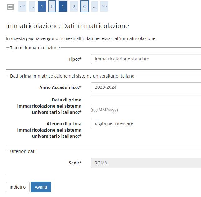 Lo studente dovrà selezionare l’anno accademico, la data e l’Ateneo di prima immatricolazione. Infine indicare lo Stato Occupazionale e premere “AVANTI”.