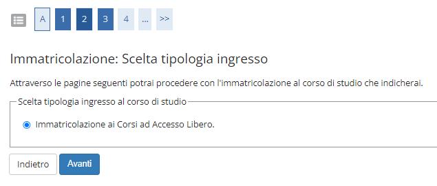 Selezionare “Immatricolazione ai Corsi ad Accesso Libero” e premere “AVANTI” .