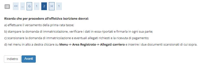Infine premere il tasto “Avanti” per concludere il processo di pre-iscrizione.