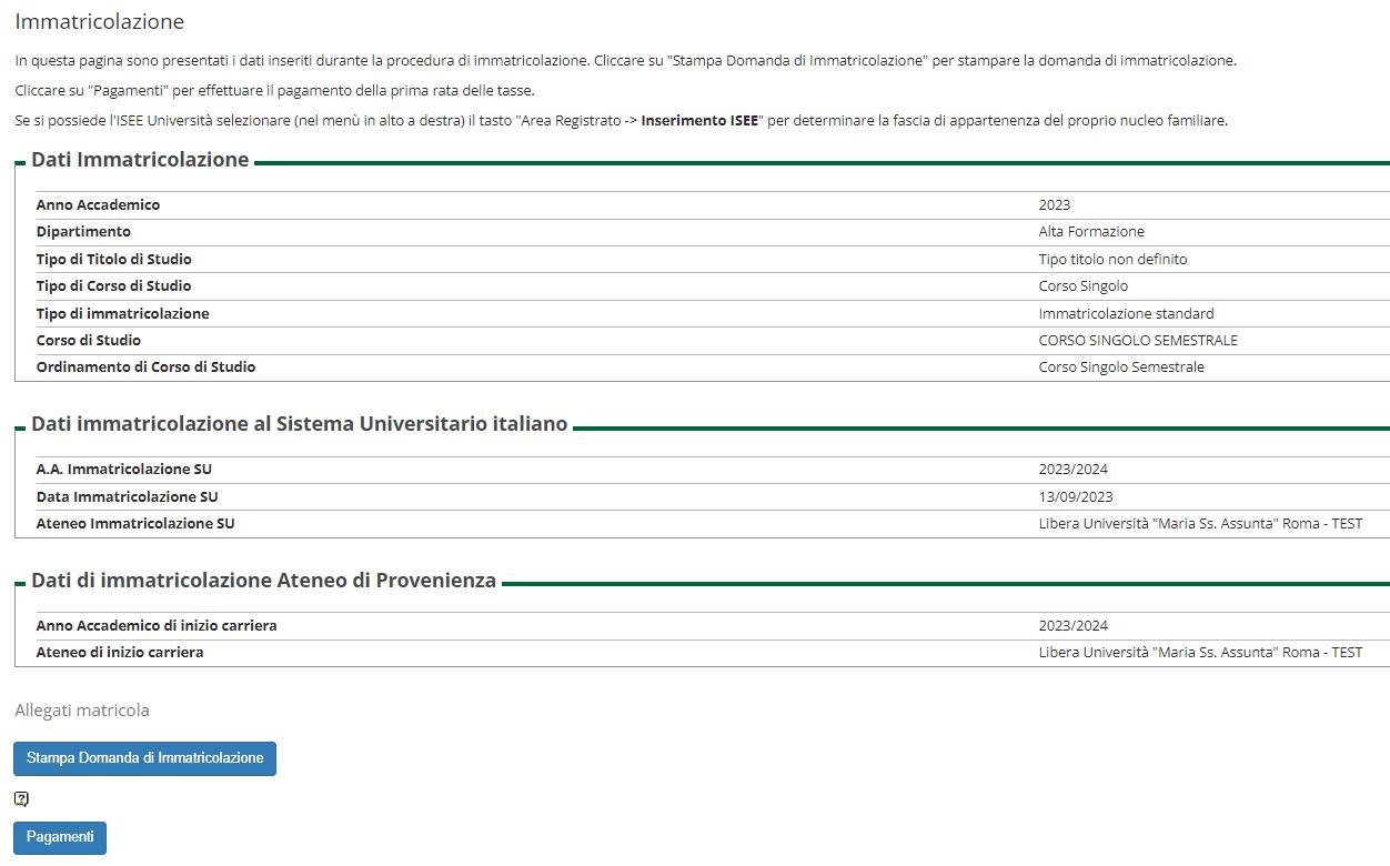 Al termine della procedura di pre-iscrizione on line premere il pulsante “Stampa Domanda di Immatricolazione”.