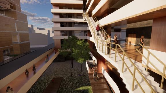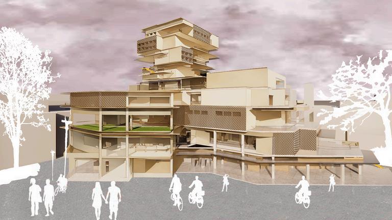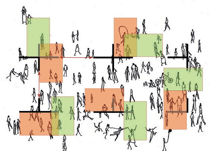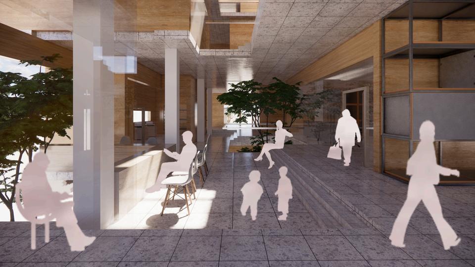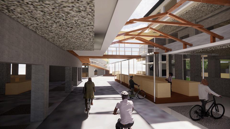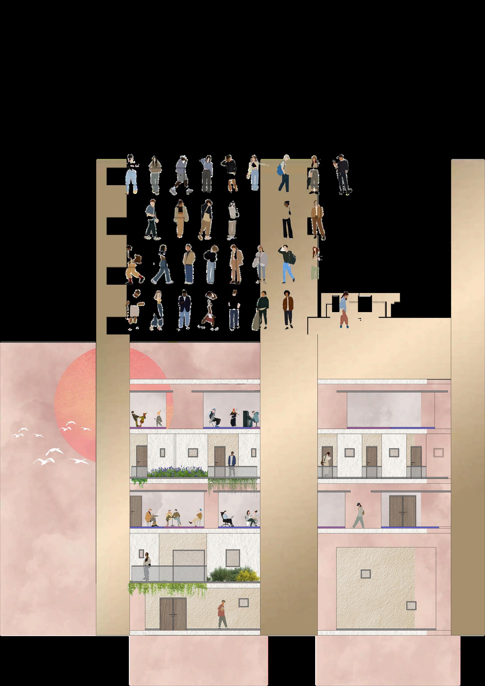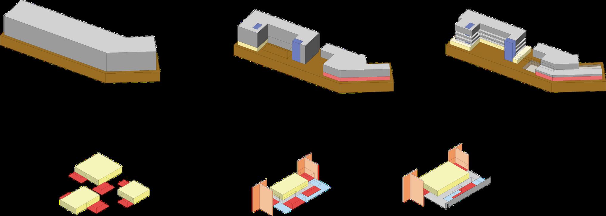 本次設計求的是在模矩化與變動性之間找尋平 衡,在模矩、結構框架上,誘發居⺠⾃然的在 留⽩處發展、互動。
