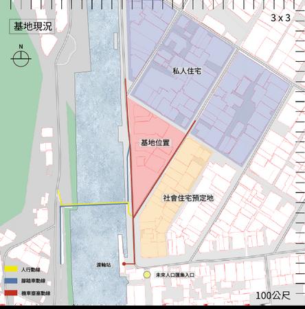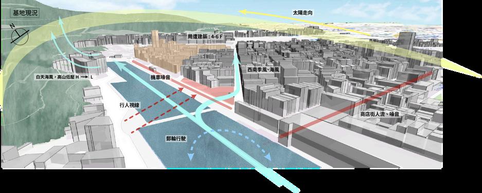 ⿎⼭區南端這塊基地被⿎⼭區給隔離出來,我認為這樣的現象很 像是離島與本島之間的關係。⽽離島的地區的特⾊便是會有⾼強 度的社區意識。因此,將這塊地視為社區去做發展便是我這次設 計的⽅向。在對社區需求的觀察下,我認為這個社區缺少了 塊 類似於公園的⾓⾊。