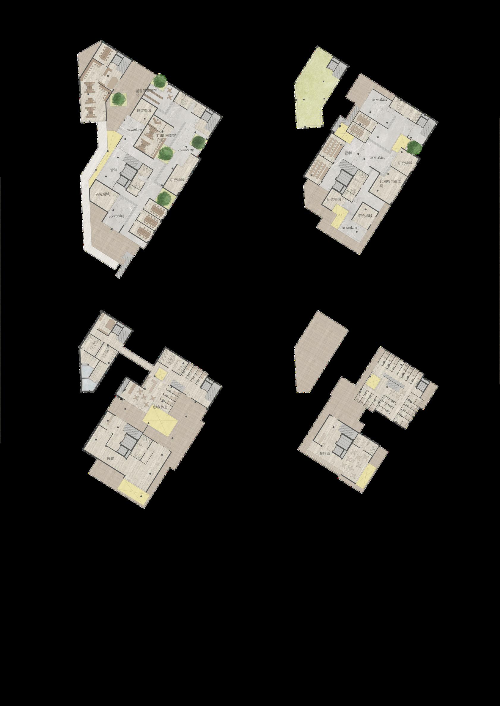 在開與合之間,尋找空間的⾃由邊界。⼯作 場域中,從多個5*10⽶的3-5⼈⼯作間來做發 展,去除牆、板,去除空間的邊界感,再開始 在這個5*10的⼯作間開始做變化,模擬不同⼯ 作性質所需的不同空間
