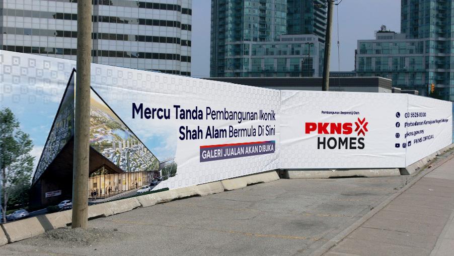 Creating a design for PKNS Square Construction Hoarding focuses on several key elements. First, the design should embody a modern aesthetic with clean lines and geometric shapes to reflect an urban contemporary style. A sophisticated color palette featuring neutral
